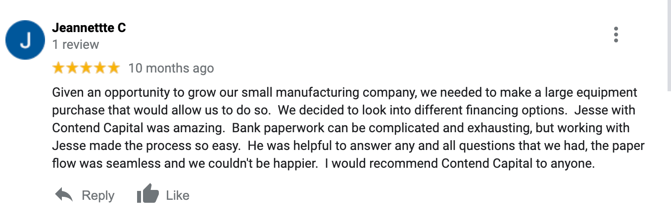 We are a manufacturing lender and therefore can approve up to $500k of manufacturing equipment solely based on one application, with the most competitive rates. If you have an established business with comparable credit history, we are a great option. If you do not have an established business, or do not have great credit, we are not the best option.